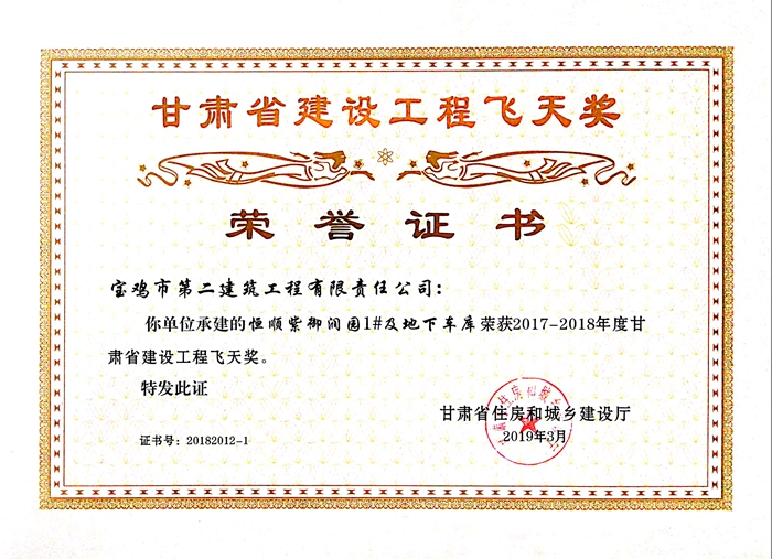 2017-2018年度甘肅省建設工程飛天獎(恒順紫御潤園1#及地下車庫)