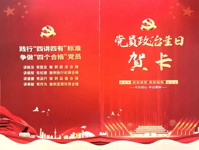 集團(tuán)公司總部黨支部為黨員集體過(guò)政治生日,向每名黨員贈(zèng)送了政治生日賀卡,號(hào)召大家牢記初心使命,履職盡責(zé)擔(dān)當(dāng),充分發(fā)揮好黨員的先鋒模范和帶頭示范作用,砥礪前行,繼續(xù)奮斗,以實(shí)際行動(dòng)迎接黨的二十大勝利召開(kāi)!