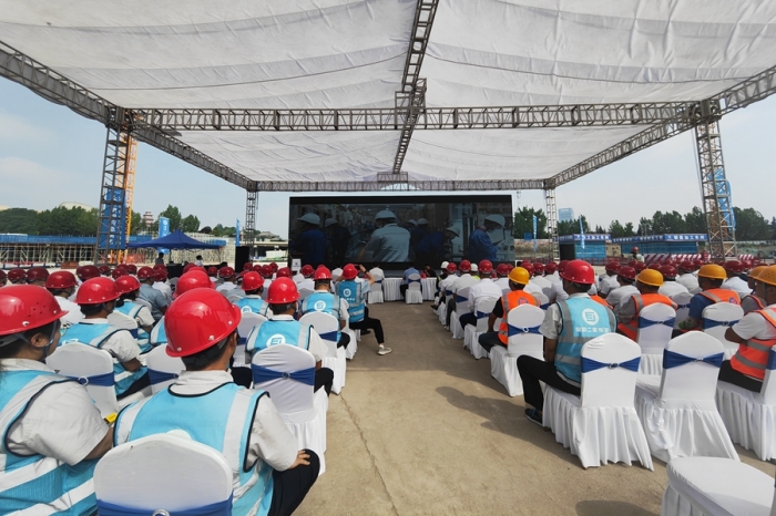 集團(tuán)公司黨委副書(shū)記、總經(jīng)理?xiàng)罱?,副總?jīng)理、總會(huì)計(jì)師嚴(yán)海軍,副總經(jīng)理申小龍出席儀式。集團(tuán)公司總部相關(guān)部門,寶雞片區(qū)各項(xiàng)目部負(fù)責(zé)人、專職安全管理人員及現(xiàn)場(chǎng)施工人員共計(jì)150余人參加了本次活動(dòng),儀式由副總工程師、工程管理部經(jīng)理郭為群主持。
