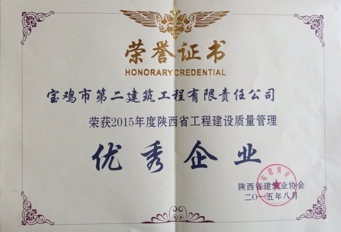 2015年度陜西省工程建設(shè)質(zhì)量管理優(yōu)秀企業(yè)